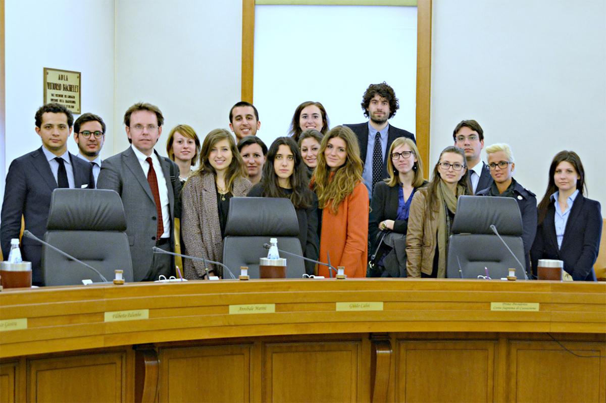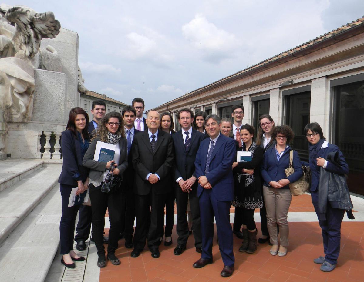 23 maggio 2012 - Foto di gruppo presso la Corte costituzionale a margine dell'incontro con il Giudice costituzionale prof. Paolo Grossi.