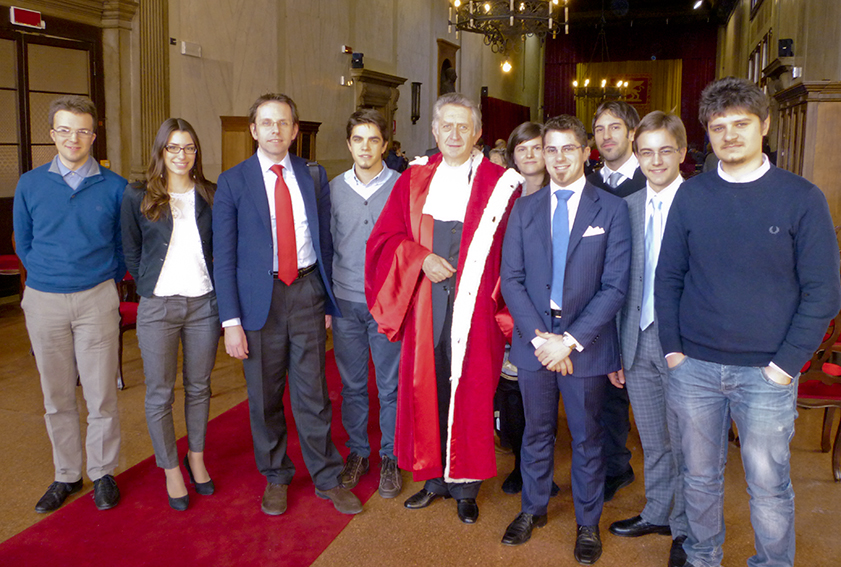 Un gruppo di Studenti della Scuola di Giurisprudenza di Padova ritratti con il Presidente della Corte d'appello di Venezia, cons. ANTONINO MAZZEO RINALDI, ed il prof. SANDRO DE NARDI, al termine della solenne cerimonia per l'inaugurazione dell'Anno giudiziario 2015.