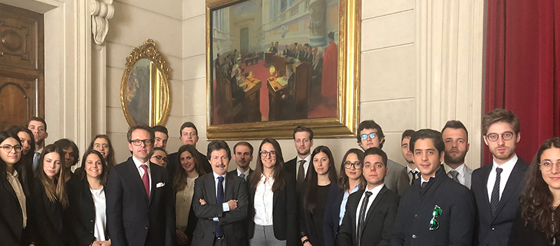 Alcuni studenti accolti dal magistrato Cons. Carlo Citterio presso l'ingresso della Suprema Corte di Cassazione
