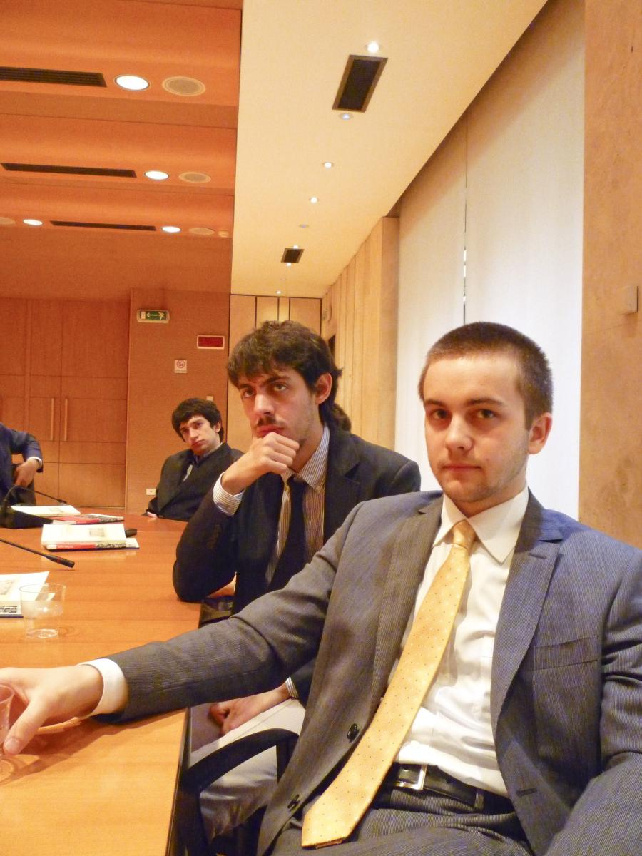 Lo studente Fabio Piasentini presso il C.S.M. mentre pone dei quesiti al magistrato Stefano Erbani