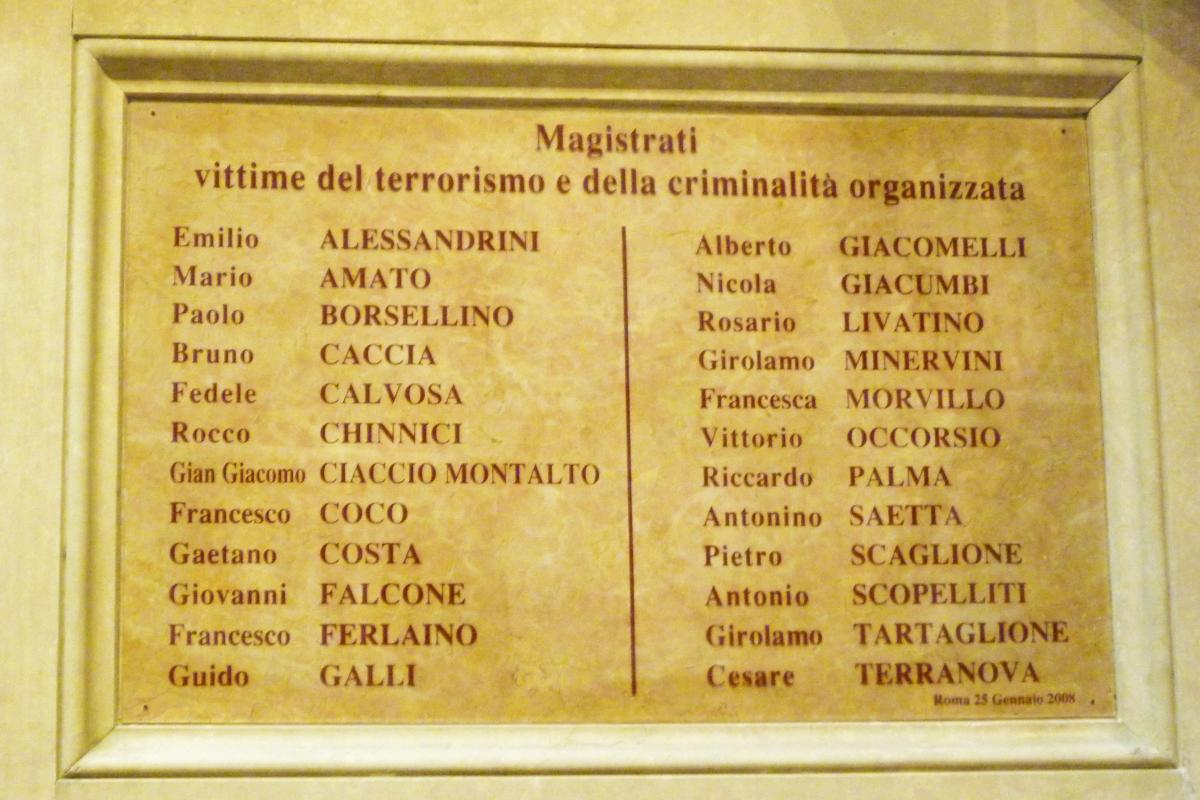 Lapide a ricordo dei Magistrati vittime del terrorismo e della criminalità organizzata presso l' Aula magna della Suprema Corte di Cassazione