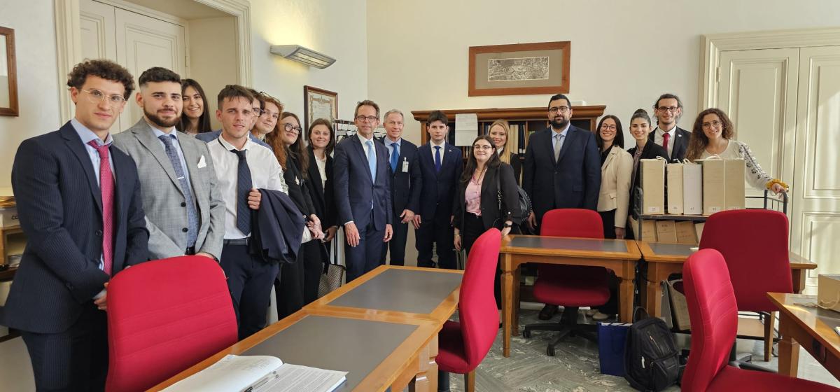 Presso Palazzo del Convento di Sant’Agostino, sede dell’Avvocatura generale dello Stato, dopo l’incontro con l’Avvocato generale dello Stato, Gabriella Palmieri Sandulli, e con altri Avvocati dello Stato
