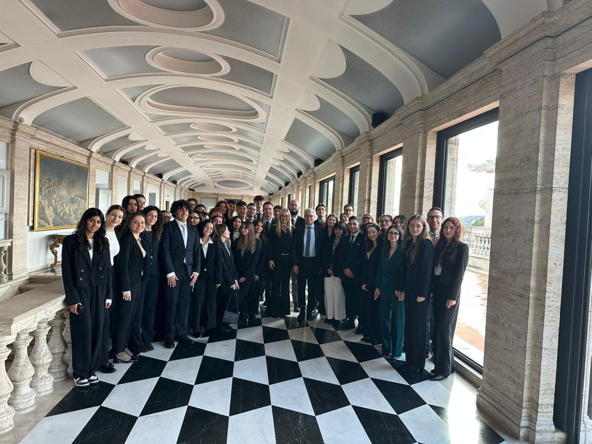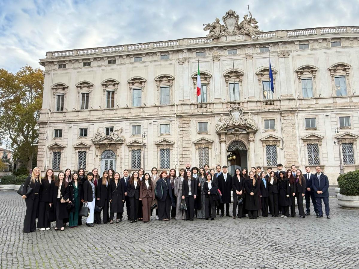 Studentesse e studenti dei corsi di laurea in Giurisprudenza, Diritto e Tecnologia e Scienze del governo e Politiche pubbliche in Piazza del Quirinale, di fronte alla Corte costituzionale.