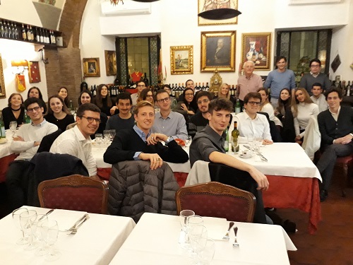 La cena con gli studenti la sera prima di assistere all' udienza