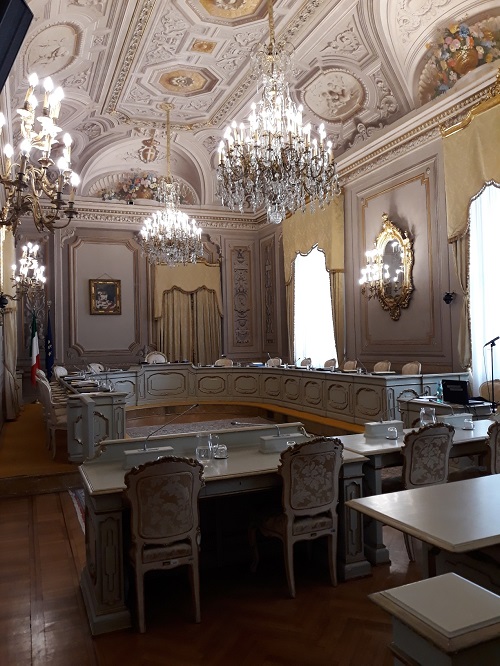 Presso la Sala della Costituzione a Palazzo Giustiniani, ove il 27 dicembre 1947 é stata promulgata la Costituzione della Repubblica italiana dal Capo provvisorio dello Stato, Enrico De Nicola.